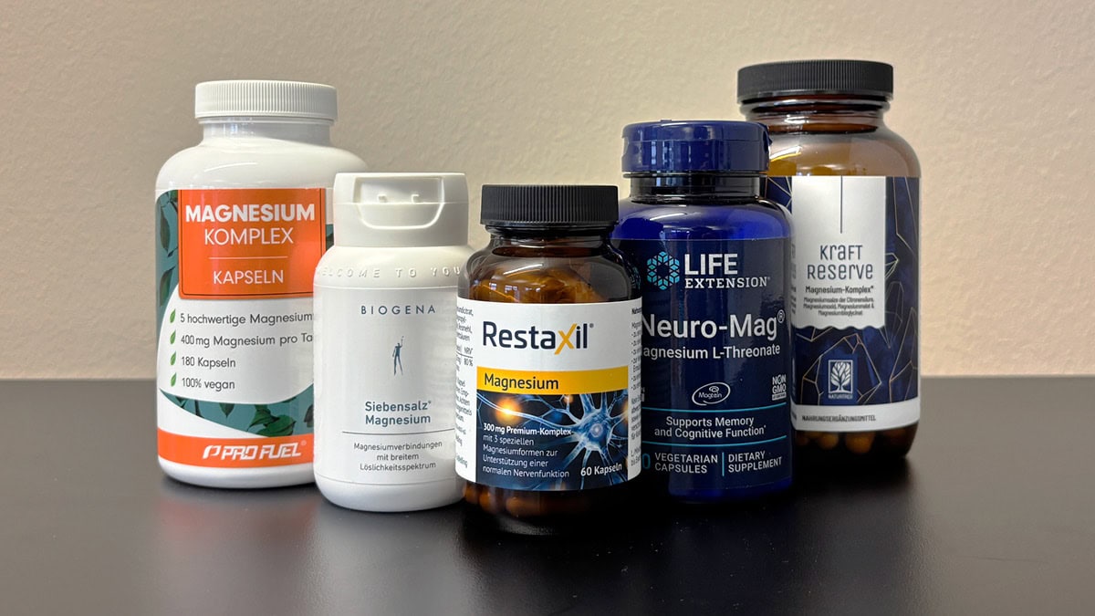 Magnesium ist aktuell der Trend unter den Nahrungsergänzungsmitteln. Es wird als regelrechtes „Wundermittel“ für verschiedenste Zwecke eingesetzt: zur Unterstützung der Muskeln, für die Verdauung, den Schlaf und und und. Aber Achtung! Der Markt ist groß und unübersichtlich. Zahlreiche unseriöse Anbieter stehen wenigen Herstellern mit pharmazeutischer Erfahrung gegenüber. Zudem gibt es verschiedene Magnesiumformen, wie z.B. Trimagnesiumdicitrat, Magnesiumbisglycinat oder Magnesiumoxid, die unterschiedliche Eigenschaften haben und daher nicht alle körperlichen Prozesse gleich ansprechen. Die Wahl des passenden Präparats hängt also immer vom beabsichtigten Effekt ab. Wir zeigen, welches Produkt uns im Test besonders überzeugt.