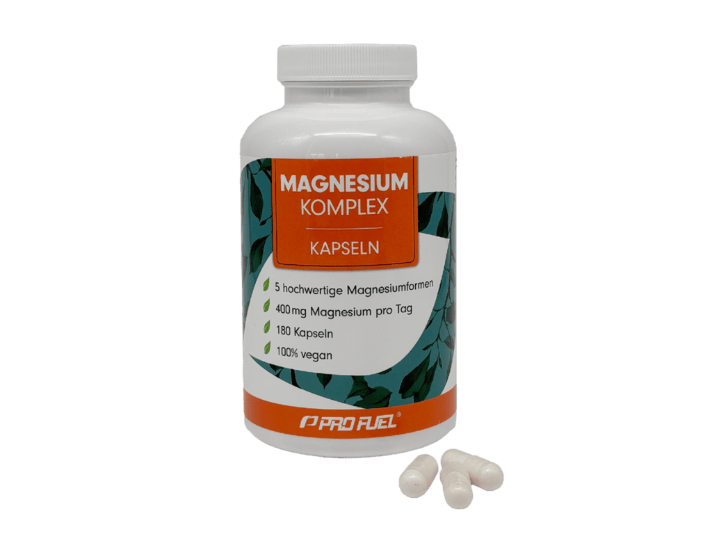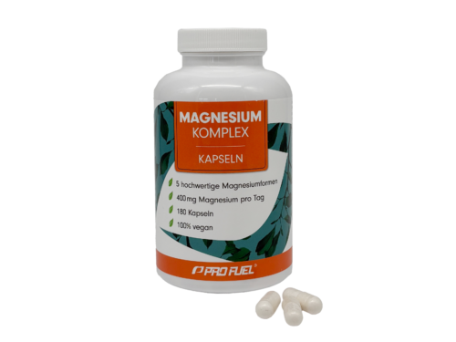 Der dritte Platz geht an den Magnesium Komplex von ProFuel. Es handelt sich um einen Komplex aus Magnesium-Oxid, Magnesium-Citrat, Magnesium-Bisglycinat, Magnesium-Malat & Magnesium-Ascorbat. Das Produkt ist frei von künstlichen Farb- und Aromastoffen und wird laut Herstellerangaben zertifiziert hergestellt sowie regelmäßig laborgeprüft.